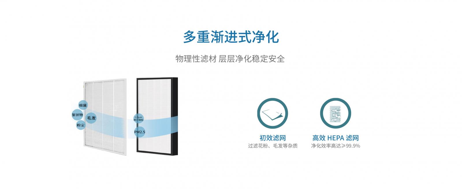 - 整机PM2.5一次过滤效率>99.9%